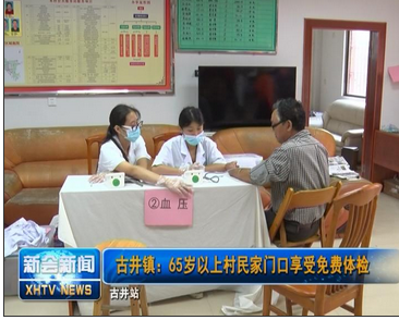 古井镇中心卫生院的医护人员带着各种医疗器械,分赴到全镇16条行政村,为65岁以上老人进行免费体检,此次活动免费提供测血压、血糖、血常规、尿常规、心电图、中医识辩等各项健康体检。除常住居民外,65岁以上的流动人口亦可享受免费体检服务。