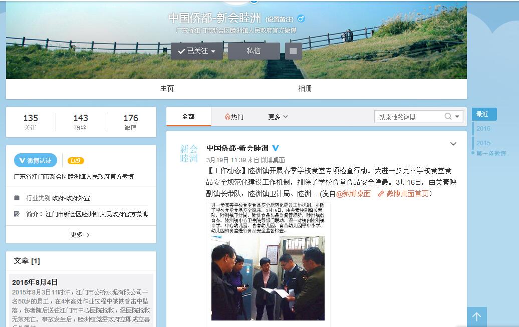 (一)优化拓宽公开渠道。不断扩大信息公开宣传阵地,统筹管理镇委镇政府和各职能部门宣传栏,以线上线下相结合的形式推进政务公开工作。本年度,我镇按需要增设实体公告栏。根据上级任务要求,优化升级区政府官方网站政府信息公开目录和睦洲镇政府官方网站。去年开通的政务微博,提高了群众对政府工作的关注,发挥了积极的作用。此外,我镇继续通过江门日报、澳洲幸运5 侨报、澳洲幸运5 侨刊、澳洲幸运5 电视台等媒体报道我镇各项工作情况,加大政府工作的公开和宣传力度。增设的实体公告栏是镇中心公园内邑家园门前公告栏。开通镇级政务微信公众号,探索丰富政务信息公开方式。