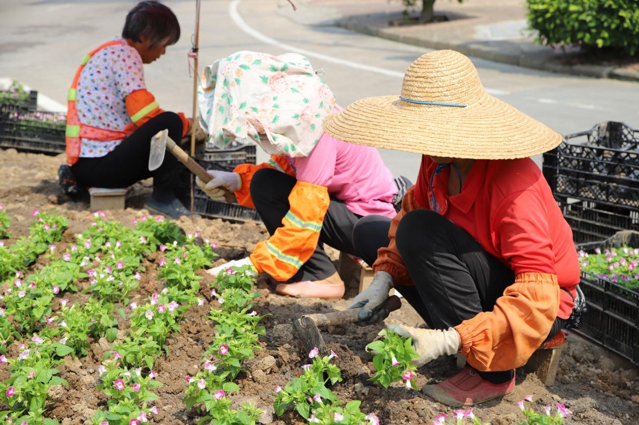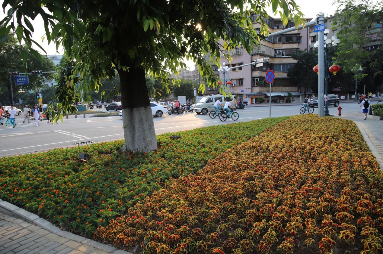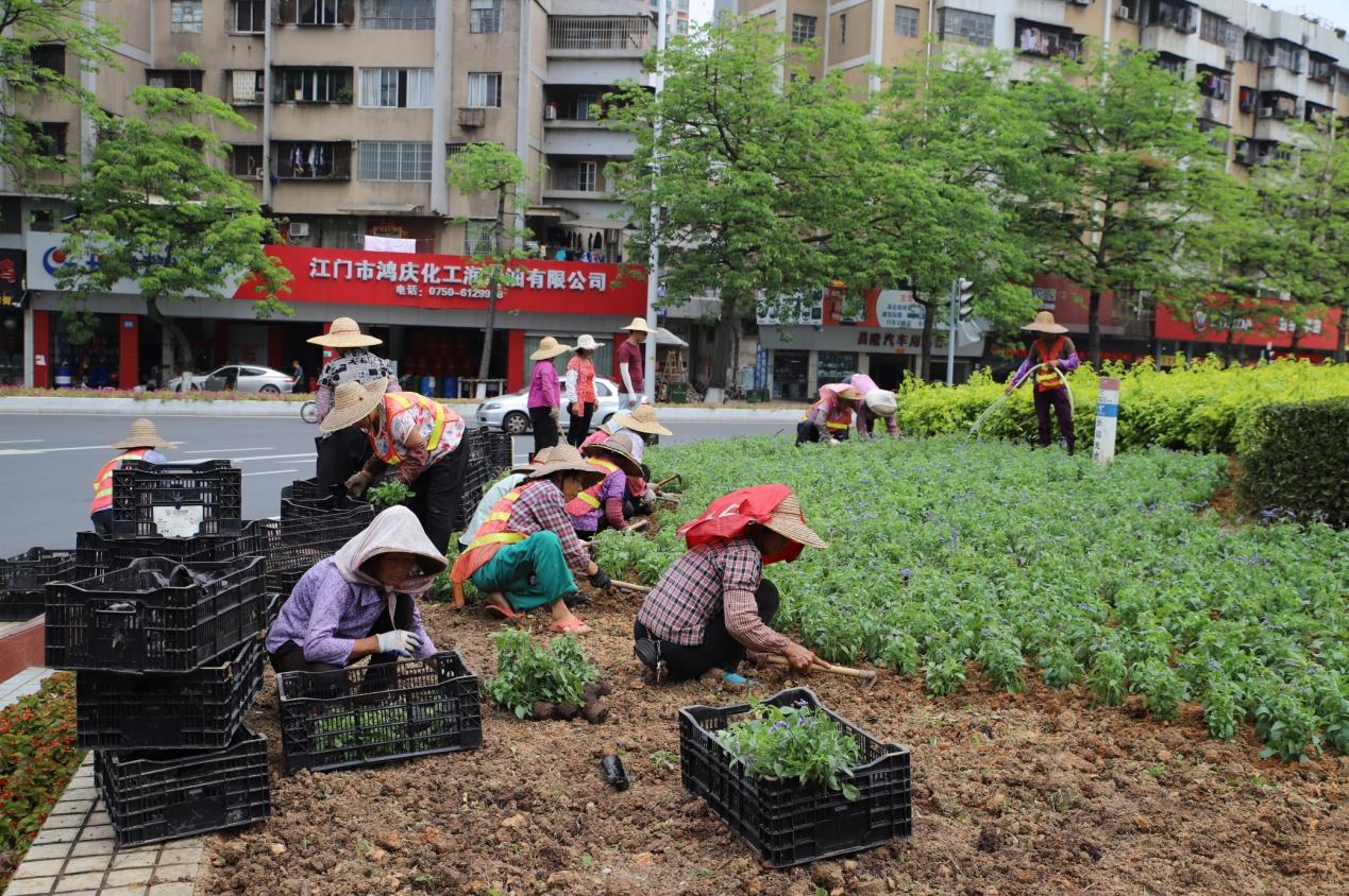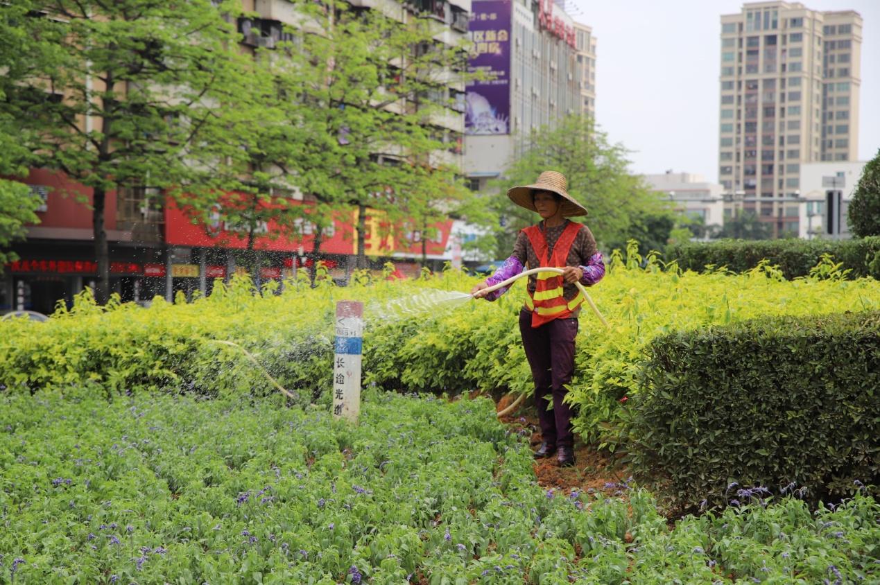 为优化城区绿化景观,园林工人不畏酷暑,脸朝黄土背朝天地在城区主要道路渠化岛开展种植工作。每天起早贪黑,从早上8点到晚上10点,穿梭于城区各个渠化岛,种植海棠、百日草、彩叶草、美女樱、夏瑾等多种花卉,给城区增添了七彩的活力。