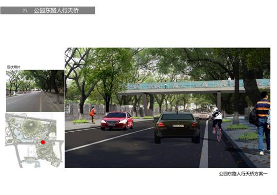 (一)新建人行天桥。在公园东路新建人行天桥,连接马山公园和北园公园。