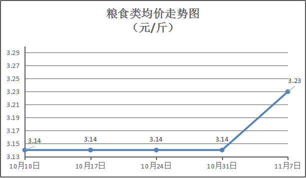 粮食类商品价格稳中有升。本周所监测的6种粮食商品均价为3.23元/斤,环比(与上周比,下同)上涨2.87%。其中:晚籼米、丝苗米、珍珠米零售均价分别为每斤3.3元、3.25元、3.3元,环比与上周分别持平、持平、上涨4.76%。