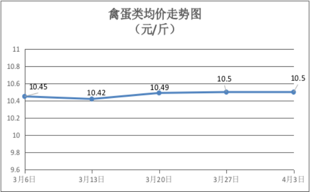 禽蛋类商品价格平稳。本周所监测的6种禽蛋类商品均价为10.50元/斤,环比持平。其中:鸭肉、白壳鸡蛋、鸭蛋零售均价分别为每斤15.00元、7.50元、8.25元,环比与上周分别持平、持平、持平。
