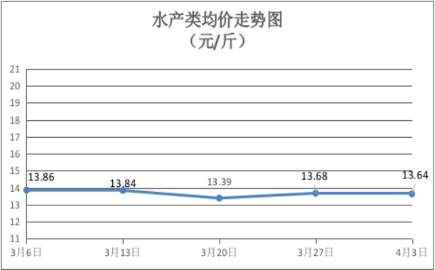 水产类商品价格下降。所监测的11种水产品综合均价为13.64元/斤,环比下降0.29%。其中:草鱼、鲫鱼零售均价分别为每斤10.50元、9.00元,环比与上周分别下降2.33%、下降2.13%。