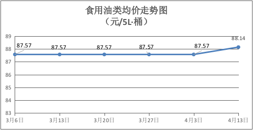 食用油类商品价格小幅上涨。本旬所监测的9种食用油(5L装)商品均价为88.14元/桶,环比上涨0.65%。其中:鲁花花生油、菜籽油、玉米油零售均价分别为每桶158元、74元、73元,环比分别下降1.25%、上涨4.23%、上涨4.29%。
