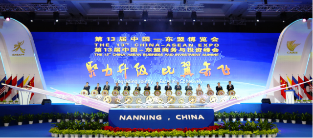 今年是中国—东盟建立对话关系25周年、东盟共同体建成和中国—东盟自由贸易区升级版开局之年,也是“一带一路”建设全面实施的重要一年。隆重开幕的本届盛会以“共建21世纪海上丝绸之路,共筑更紧密的中国—东盟命运共同体”为主题,重点围绕国际产能合作、周边互联互通、中国—东盟信息港建设、国际园区等多个领域,促进各方达成新的合作,得到中国和东盟各国以及区域外国家的高度重视和关注。中共中央政治局常委、中国国务院副总理张高丽,第13届东博会主题国越南总理阮春福,柬埔寨首相洪森,缅甸第一副总统吴敏瑞,老挝副总理宋赛,泰国副总理巴金,斯里兰卡工商部部长里沙德,文莱首相府部长兼外交与贸易部第二部长林玉成,马来西亚贸工部第二部长黄家泉,菲律宾参议院参议员辛西娅?维拉,新加坡贸工部兼国家发展部政务部长许宝琨,印尼贸易部国家出口发展总司总司长阿琳达,东盟秘书长黎良明,广西壮族自治区党委书记彭清华,中国商务部国际贸易谈判代表兼副部长钟山,中国国际贸易促进委员会副会长陈洲,中国阿里巴巴集团董事局主席马云等共同为第13届中国—东盟博览会和商务与投资峰会启幕。