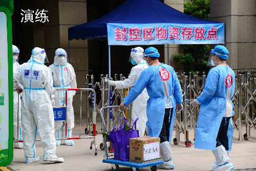 演练对防控区域管制、生活物资准备、重点人群转运、特殊情况处置、区域核酸检测等流程开展实操演练。公安部门对碧桂园柏悦府小区实行封闭管理,对碧桂园周边道路实施交通管制;区、街道、社区三级迅速摸清封控区、管控区内所有人员底数,建立台账,并做好健康监测;区科工商务局统筹做好封控和管控区域居民至少14天的生活物资基本保障;区委组织部和团区委组织志愿者协助做好封控区域的物资保障、居民健康监测工作;卫健部门迅速组建医疗队,落实技术指导和核酸采样、检测并全力做好防控区域内医疗保障工作。