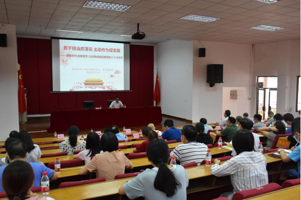 7月1日上午,局党组书记、局长张键明同志以“勇于担当抓落实 主动作为促发展”为主题,为全局党员干部讲授专题党课,围绕党员干部必须要有担当、衡量一名党员干部敢于担当的标准、如何做一名有担当的合格党员,作了深刻的阐述,并结合科工商务工作实际,要求全局党员干部发挥勇于担当、主动作为的精神,以省第十三次党代会精神为引领,坚决贯彻落实省委“1+1+9”工作部署和市委“1+6+3”工作安排,加快建设“一园三中心”,以优异成绩迎接党的二十大胜利召开。与会党员干部纷纷表示,将以学促行、学以致用,牢记总书记嘱托,深入学习贯彻省党代会精神,深入实施市“六大工程”,稳住工业基本盘、持续激发创新活力、积极促进消费、推动外贸外资平稳发展、加大招商引资力度,在全力建设“首善之区”,当好江门高质量发展标杆上,担起科工商务责任、展现科工商务作为。
