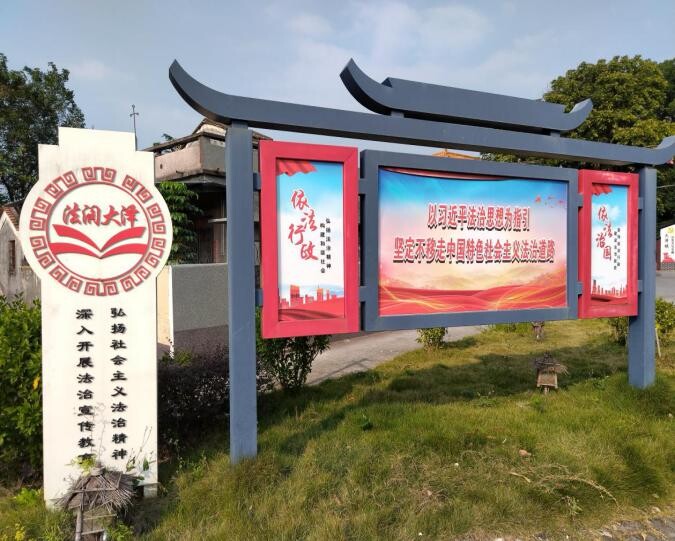 九子沙村以创建“民主法治示范村”为工作契机,依托“一村(社区)一法律顾问”工作制度,组织律师深入田间地头开展“送法上户”服务;注重队伍建设,定期开展培训活动,有效提升村两委干部依法履职能力;因地制宜,首创流动积分车兑换形式成立群众信访诉求综合服务站点,畅通村民依法维权渠道;以九子沙廉政公园为载体,增设法治宣传栏、巧设法治读书角、建设法治宣传长廊、打造法治文化小公园,逐步优化村民学法场地,先后荣获“广东省乡村治理示范村”“江门市先进基层党组织”等称号。