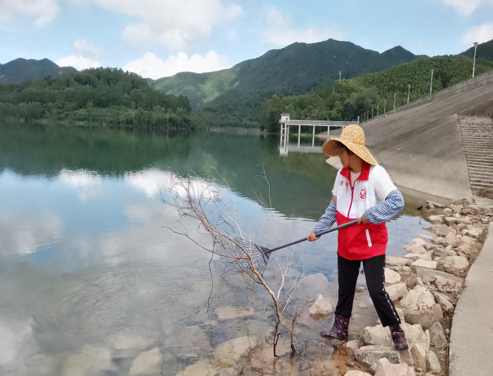 ▲水库党员干部带头清理库区垃圾