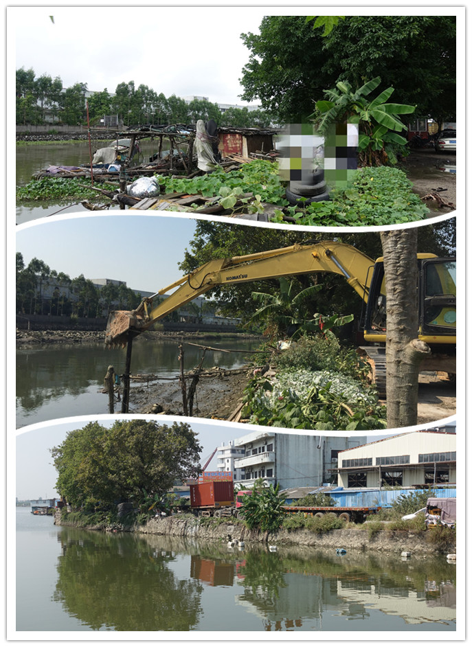 10月中旬,当事人已自行拆除木棚架和简易码头,并拖走停泊的木船。为确保河道行洪畅通,我局组织机械将河道内的残余木桩彻底清除。