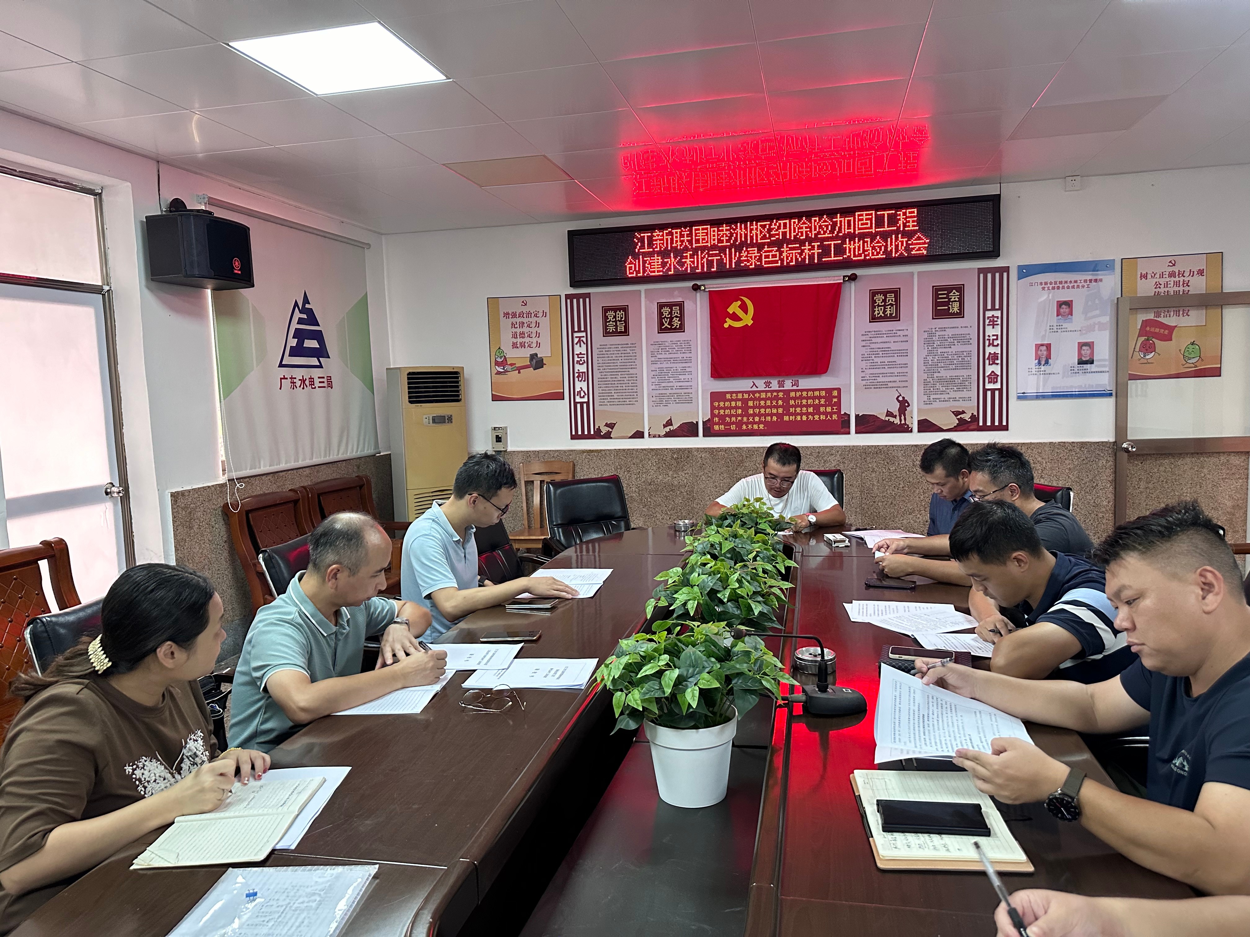 为深入学习贯彻习近平生态文明思想,江门市江新联围睦洲枢纽除险加固工程临时党支部积极响应国家号召,将“绿水青山就是金山银山”的绿色发展理念深植于心、践之于行。江新联围睦洲枢纽除险加固工程项目以“打造绿色标杆,引领绿色施工新风尚”为目标,在保障工程质量和安全的前提下,通过一系列创新举措,最大限度地减少工地建筑废弃物的产生,实现了资源节约和环境保护,并顺利通过水利行业绿色标杆工地验收。