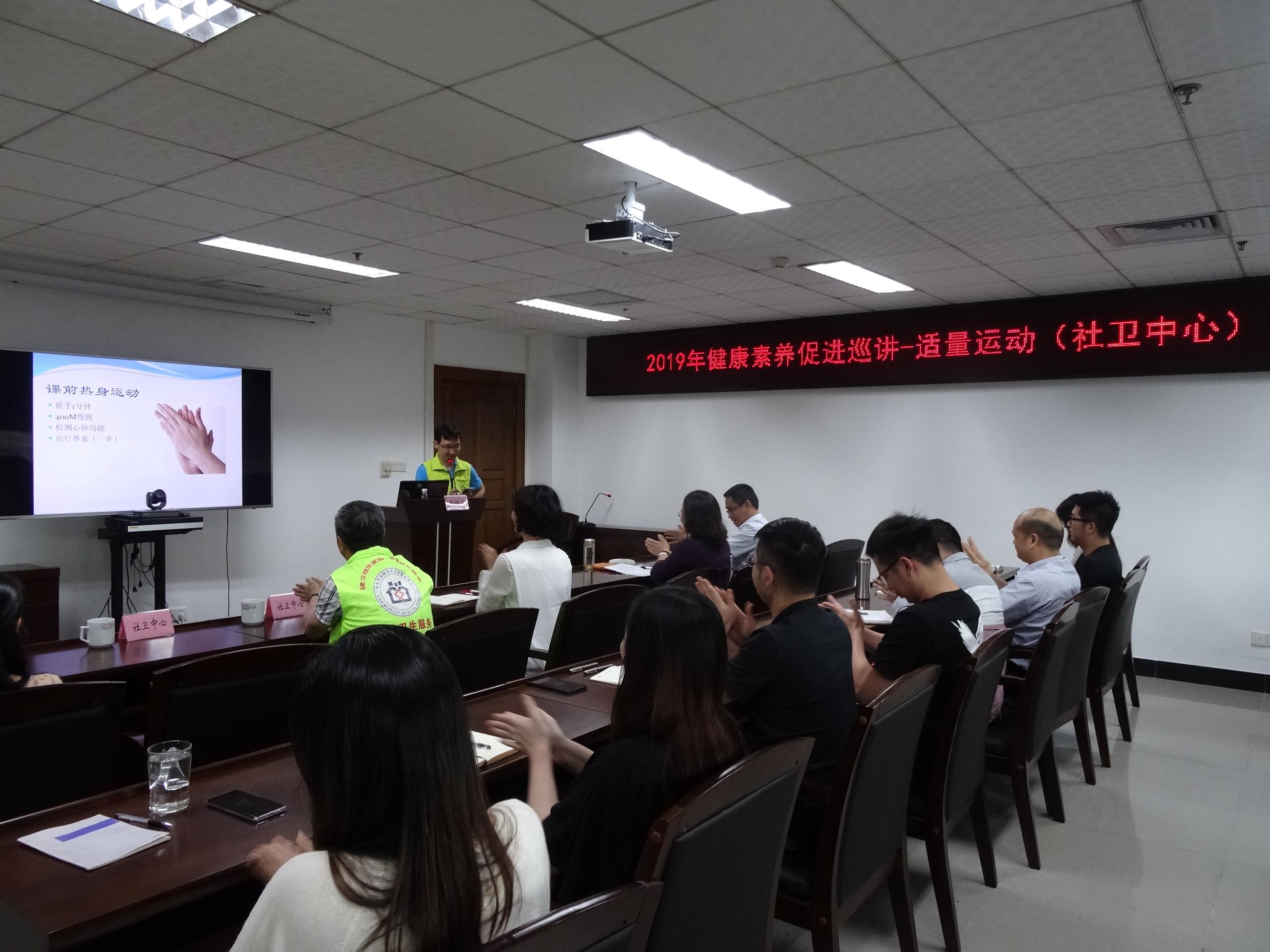 为贯彻落实中央、省、市卫生与健康大会的精神,切实做好健康素养促进行动项目工作,普及健康素养知识,提高居民健康素养水平,有效推进我区省级健康促进区建设。根据区卫生健康局的安排,5月14日,我局邀请会城街道办社区卫生服务中心(新城医院)家庭病床科主任周健成医生为我局干部职工作主题为适量运动的健康素养促进讲座。