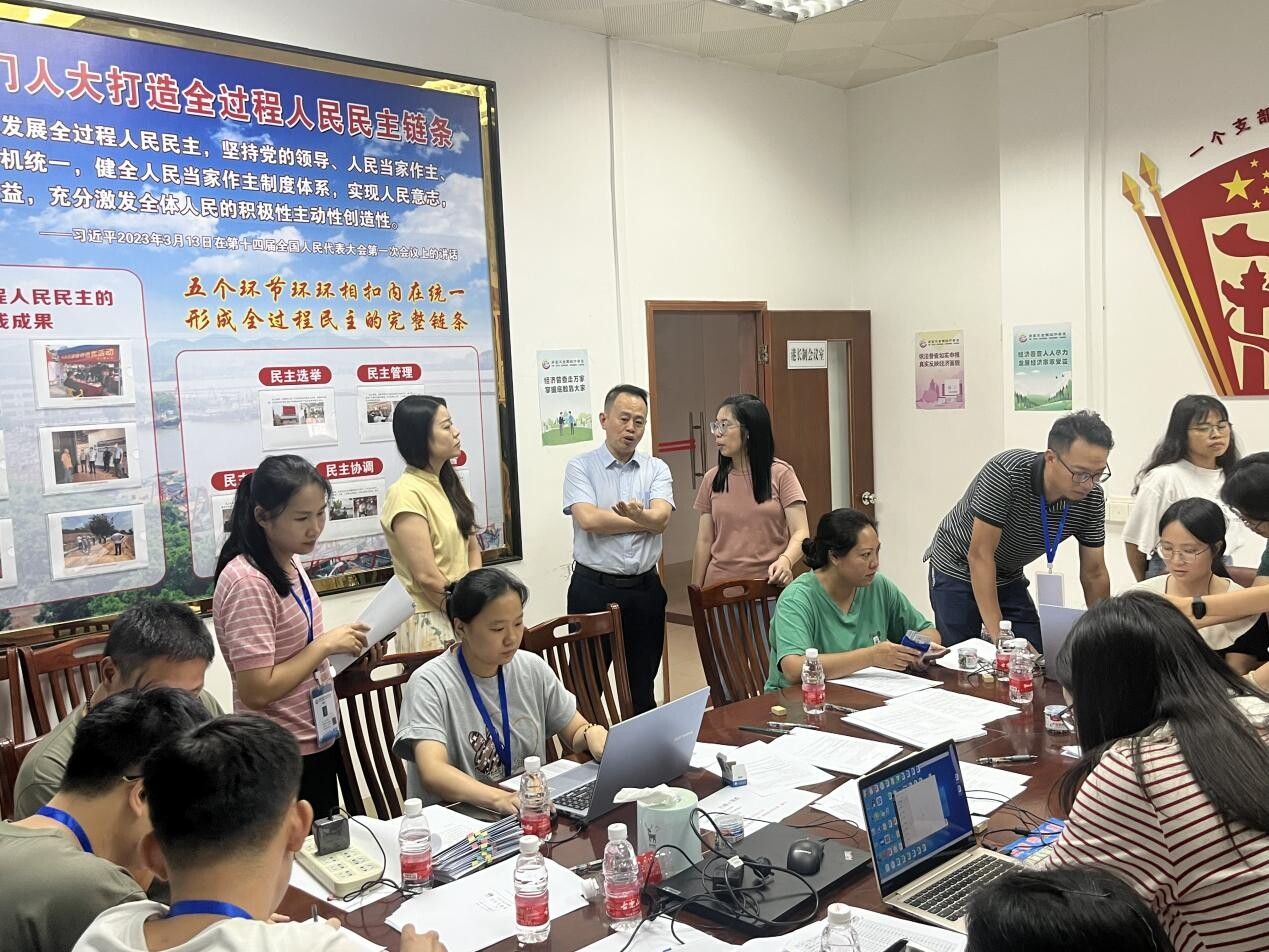 当天清查工作结束后,调研组听取了崖门镇关于“五经普”工作情况汇报,详细了解机构组建、人员经费、办公场地、“两员”选聘、业务培训、单位清查等工作进展情况,现场检查了“五经普”工作档案资料归档及整理工作,就工作中遇到的困难、解决措施及好的经验做法等进行了交流,并提出了指导意见。