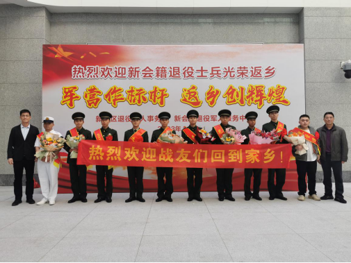 未到下午 3 点,区退役军人事务局、区人社局有关负责人、各镇(街)退役军人服务站工作人员与退役士兵家属早早守候在江门高铁站,兴奋地等待第一批返乡退役士兵归来。在众人的期 盼下,一位位身穿军装的退役士兵神采奕奕地从出口处走来,区退役军人事务局和各镇(街)负责人迅速迎上去,第一时间为他们佩戴绶带,送上鲜花和纪念品。“热烈欢迎战友们回家!”大家笑意盈盈地表达祝贺,传达党和政府对退役军人的重视关爱,感谢他们为保家卫国作出贡献。“两年没有回家,看到有这么人来迎接我们,内心非常激动,感受到家乡的热情和温暖。”退役士兵小李高兴地说道。