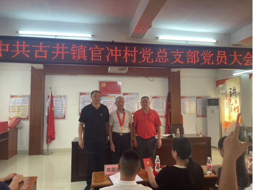 古井镇党委副书记、镇长张振量为退役军人黄子力颁发纪念章