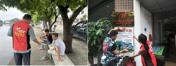 他们是居民的“大声公”。在“登革热”防控活动中,为了达到宣传效果的最大化,让居民从认识上高度重视疾病预防,退役军人党员志愿者不遗余力地使出浑身解数,通过走访入户、发放宣传资料、张贴海报、现场讲解等多样化方式,向居民们详细介绍了登革热的传播途径、症状以及预防方法等知识,引导大家树立良好的生活习惯,讲究卫生,做好防蚊灭蚊和个人防护工作,如果相应症状建议立刻就医,从源头上防控登革热。