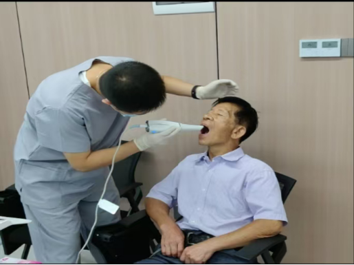 值得一提的是,医院特意准备了高科技AI口扫仪,在医生的专业操作下,能够全面采集三维口腔信息,让牙齿和骨骼情况一览无遗,并迅速上传到系统分析牙齿是否存在龋齿、牙结石、色素沉着、牙周炎等口腔问题,快速生成可视化口腔报告,专家医生便可根据报告给予专业的口腔健康指导和护理建议,形成个人健康档案。此举不仅大大缩短个体检查和信息录入时间,也让军休干部感受到“科技改变生活”,为他们面对面、零距离提供了高水平的医疗服务。