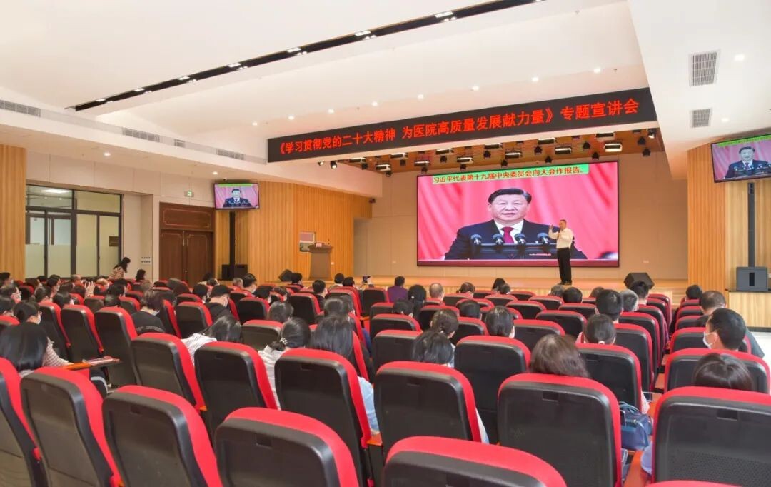 会上,陈溢利以“学习贯彻党的二十大精神,为医院高质量发展献力量”为主题展开宣讲。他通过“一面旗帜”、“三个全面”和“五个牢牢把握”对党的二十大报告中提出的一系列新的重要论断进行了阐述。同时,围绕党建引领医院高质量发展的主题,回顾了新时代卫生健康事业发展取得的历史性成就,解读省卫生健康工作高质量发展的具体要求,高度赞扬区妇幼保健院在保障全区妇女儿童生命健康中作出的贡献,并为医院高质量发展拓思路、献良策,助力推动医院各项事业乘风破浪砥砺前行。最后,陈溢利结合近期医疗领域腐败问题对与会人员进行警示教育,提醒广大党员干部知敬畏、存戒惧、守底线,切实做到防微杜渐、警钟长鸣。整场宣讲主题突出、脉络清晰,引人深思,参会人员反响热烈。