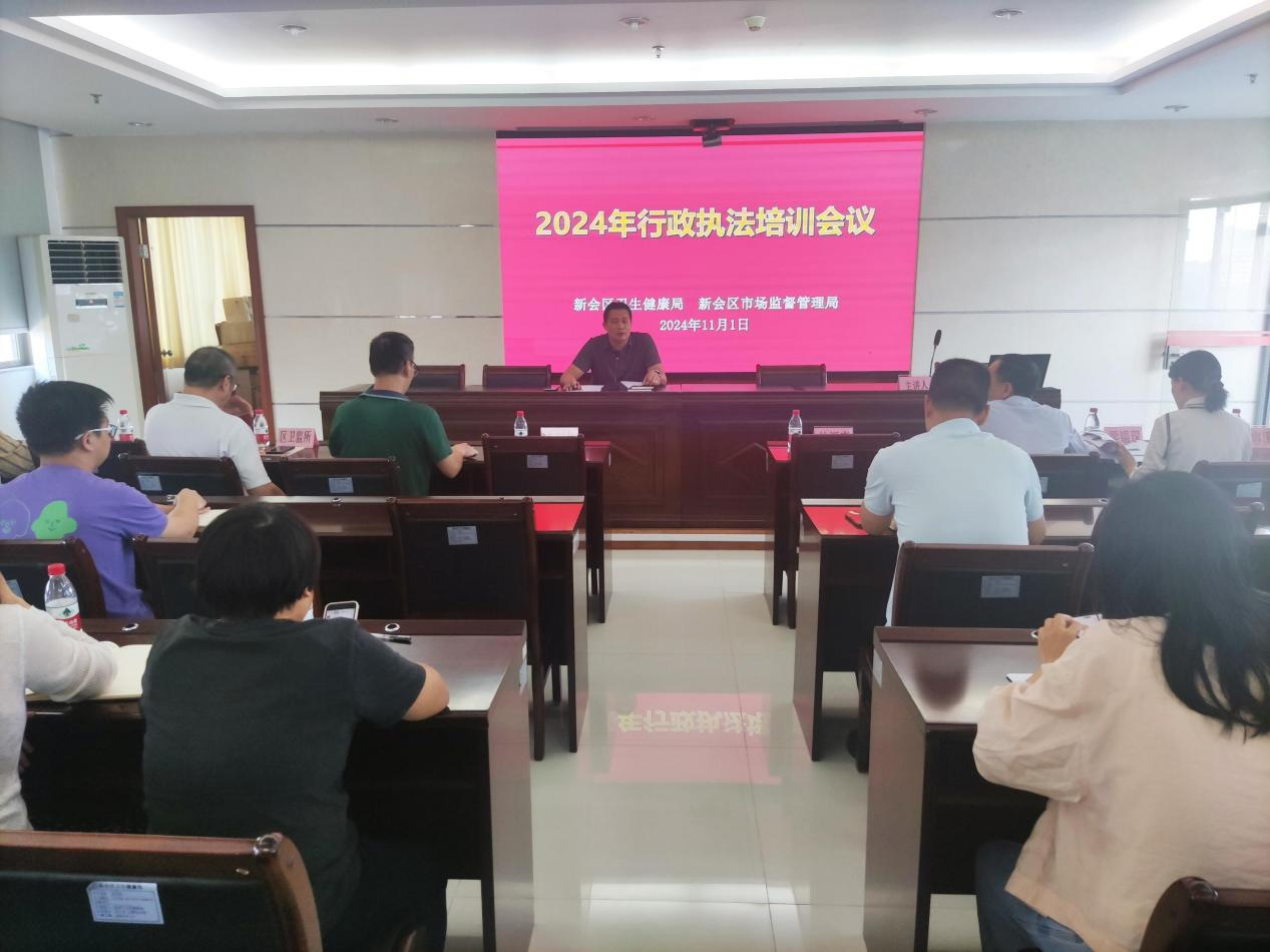 为提升行政执法人员的执法水平,2024年11月1日区卫生健康局在五楼会议厅召开2024年行政执法培训会议。邀请区市场监督管理局林振庆副局长、政策法规股岑葵安股长、政策法规股梁韫琛副股长、广东方易圆律师事务所容国维律师参加会议,参加会议的还有区卫生健康局李利华副局长、区卫生监督所领导班子、区疾控中心分管领导、局相关股室负责人以及有关工作人员。