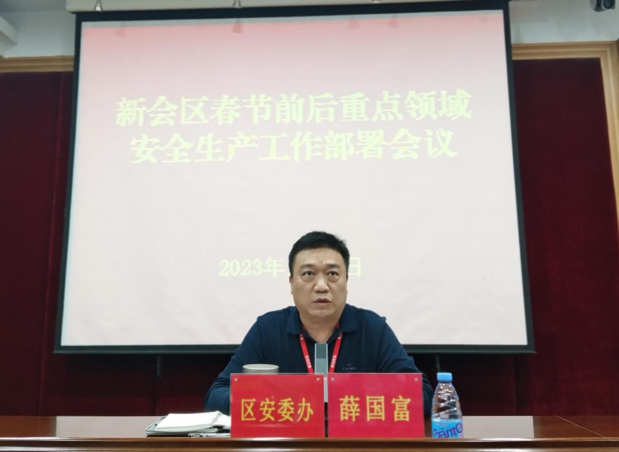 春节前后重点领域安全生产工作部署会议。区安委会副主任、区安委办主任、区应急管理局局长薛国富,各镇(街、区)分管负责同志和应急办主任、区安委办有关成员单位分管负责同志,区应急管理局各股(室、队)负责人等50多人参加会议。