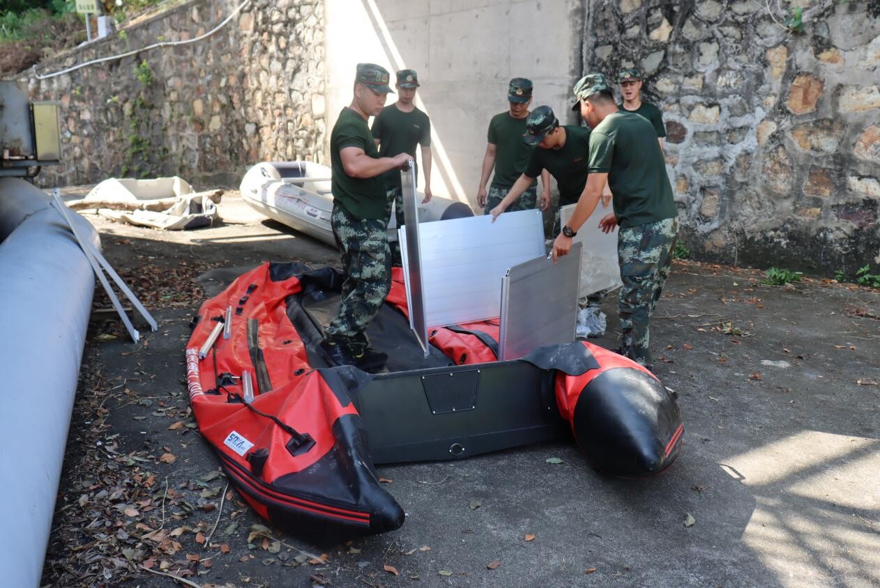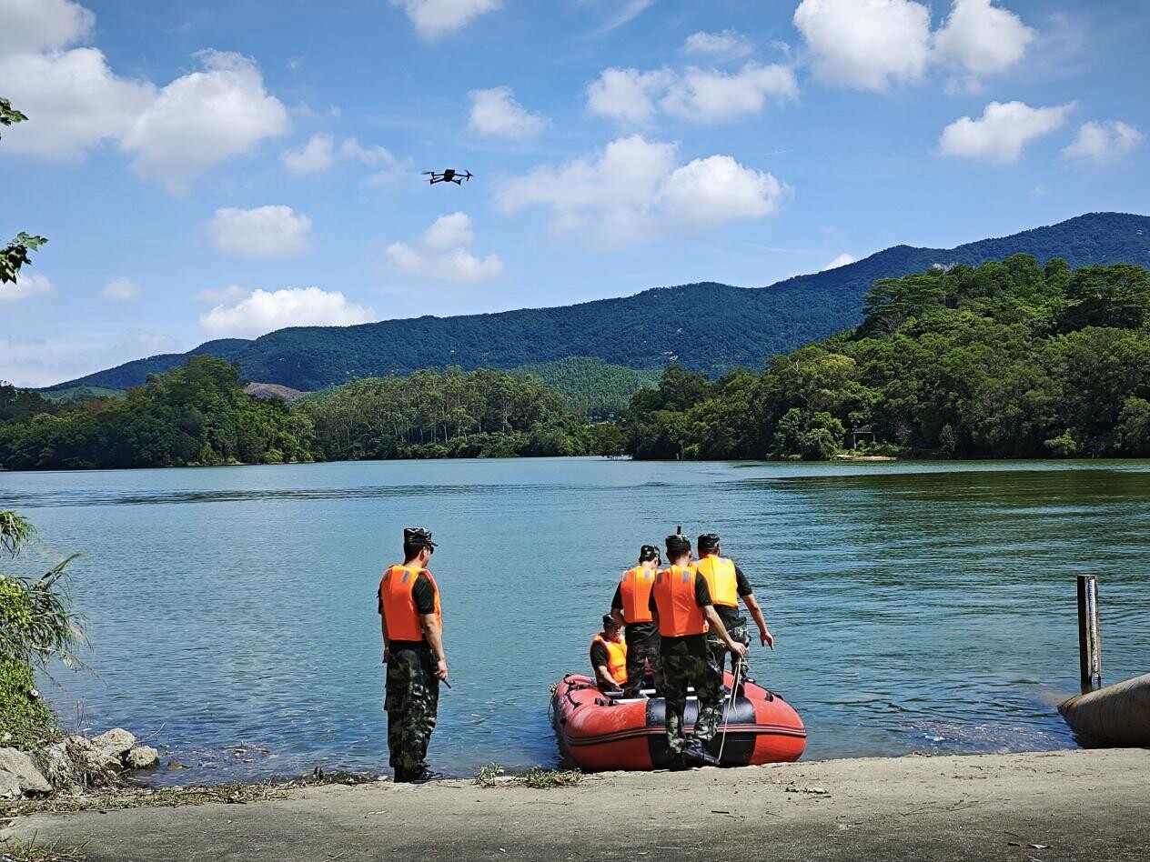 演练模拟石涧水库因极端天气水位暴涨,有数名群众被洪水围困,急需救援。区应急管理局值班室接到险情报警后,立刻启动应急处置预案,指令区森林消防和三防应急大队携带动力橡皮艇、救生衣和救生圈等水上救援装备前往现场展开救援。大队到达后,无人机操控员使用无人机迅速寻找救援目标,对水库周围环境进行建模,为救援提供一条安全可靠的路线;其他队员在河堤上组装动力橡皮艇,做好应急救援准备,然后根据前线无人机反馈的现场情况,在河面进行搜寻,最后在一座地势较高的中心小岛上发现“被困群众”,救援人员立即上前,为“被困群众”穿好救生衣等防护设备,随后转移至安全地区,让“被困群众”脱离危险。