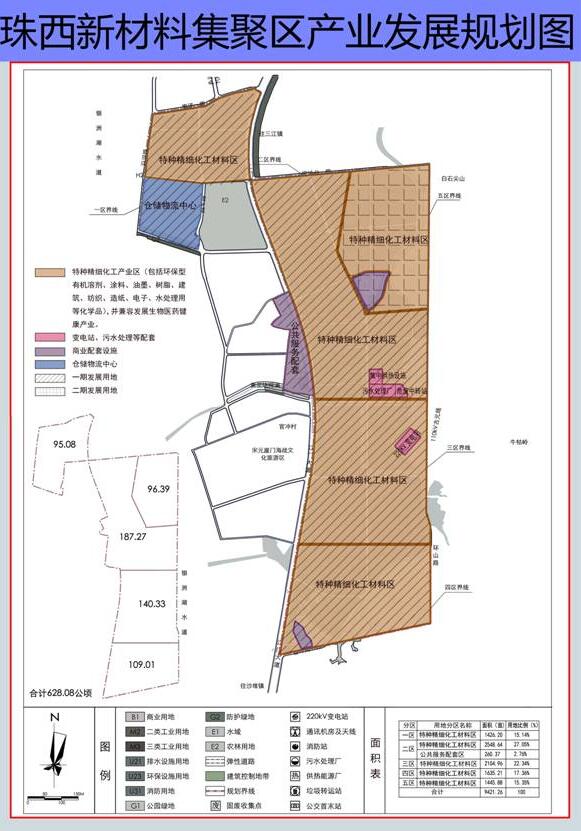 (5)产业发展方向:珠西新材料集聚区规划着力发展特种精细化工材料产业集群以及建设相关的公用工程物流配套设施: