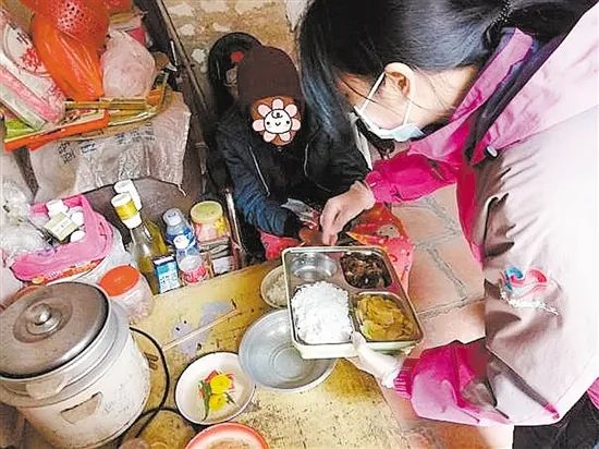 临近午饭时间,睦洲爱心厨房的工作人员运送饭菜到了莲子塘长者食堂,因疫情影响,长者食堂实行送餐服务,两位社工匆匆回到食堂,因需送餐人数增加,刘燕萍、廖惠琼也投入送餐服务中,将一份份热饭菜送到困难长者手中。