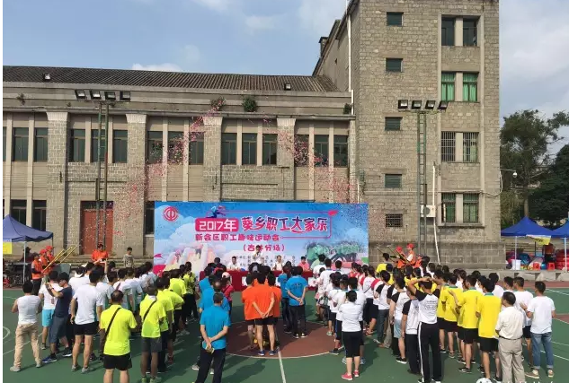 4月21日,古井职工服务中心篮球场热闹非凡,欢声笑语不断,古井镇总工会举办的庆“五一”职工趣味运动会在这里隆重举行。区总工会副主席汤买波、古井镇人大主席钟宇顺出席活动。