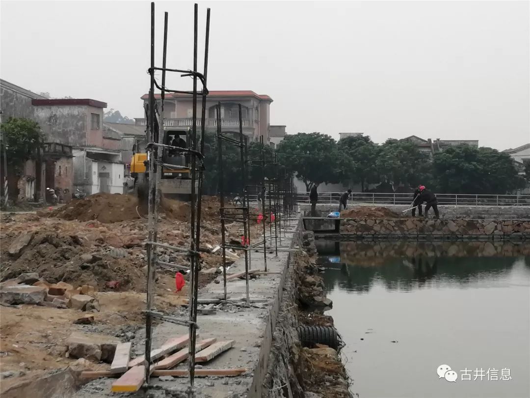 为实施乡村振兴战略,古泗村按照“产业兴旺、生态宜居、乡风文明、治理有效、生活富裕”的振兴图景,以打造“一村一池塘”为契机对池塘进行升级改造。通过对池塘中的垃圾进行了清理,拆除塘边的一间公厕和20多间猪舍,清理杂草杂树,重新砌石堤长115米,新建高1.2米、总长286.5米的塘边护栏和6个景观花圃,新建549.5平方米的水泥路面,并将在花圃种上花草树木,在池塘里养鱼。整个工程预算需要资金86万多元,预计春节前完工。