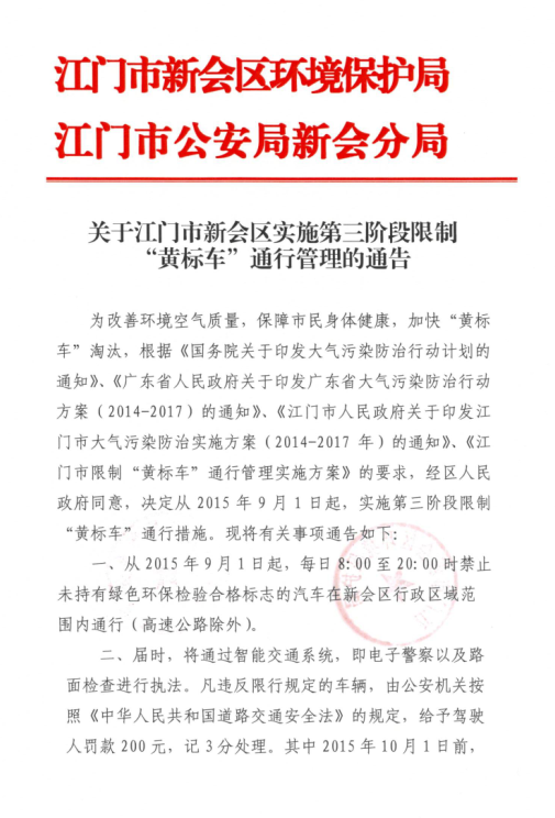 关于澳洲幸运5(中国)开奖记录查询站 实施第三阶段限制“黄标车”通行管理的通告