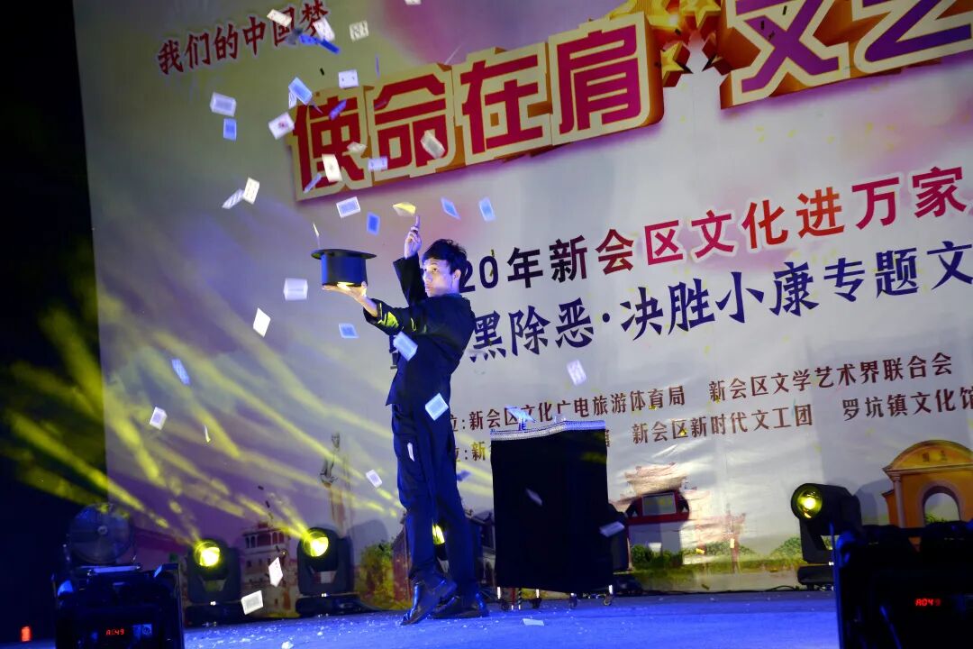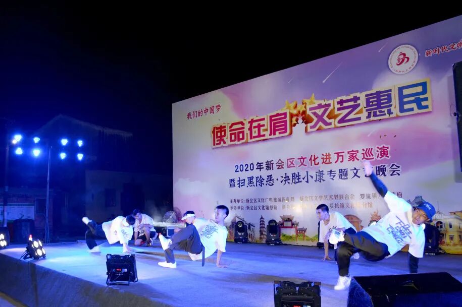 新时代文工团、罗坑镇文化馆分馆协办。 开场以星之舞舞团的《我们都是追梦人》拉开帷幕,轻快的旋律,优美的舞姿,用双手承托梦想,传播积极向上的正能量。 随后还有男声独唱、舞蹈、粤曲、小品以及魔术等一个个丰富多彩的文艺节目轮番上演,演出现场歌舞飞扬,笑声掌声此起彼伏,热闹非凡。 Sky街舞团的《天空之城》以动感的舞姿,展示青春的魅力,为整场晚会驻入青春的气息。 为充分发挥我镇文化队伍作用,芳姿舞蹈队献上广场舞《我们共同的家》、中心小学曾艺佩老师用温婉而优美的歌声,独唱《阳光路上》,引人入醉。 其中,为普及村民的法律知识,晚会还加入《中华人民共和国民法典》普法宣传有奖问答环节,现场村民热情高昂,踊跃答题。 此次文艺演出活动,为现场观众带来一场精彩的视听盛宴,得到村民一致好评,丰富了我镇群众的精神文化生活,营造良好的文化氛围。 来源:罗坑镇新时代文明实践所