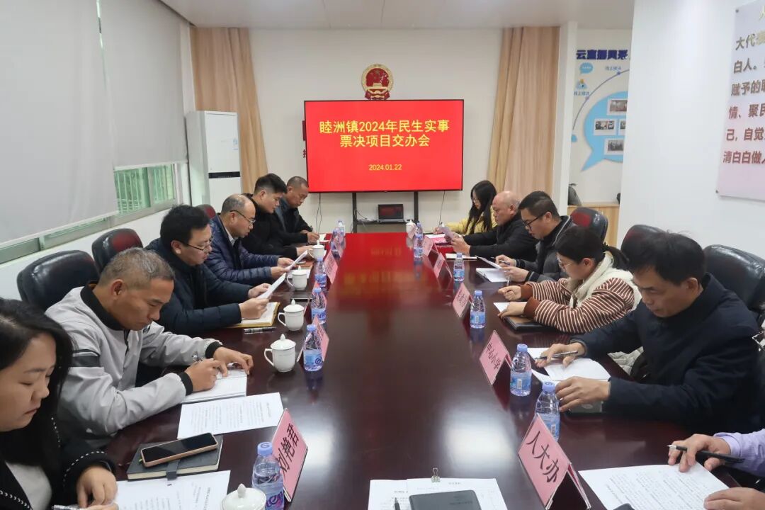 1月22日下午,睦洲镇人大召开镇2024年民生实事项目交办会,进一步推进民生实事项目工作。镇党委副书记、镇长马英棉,镇党委委员陈才胜、副镇长宋鼎新、副镇长刘艳君,各承办部门负责人参加会议,镇人大主席吴汝森主持会议。