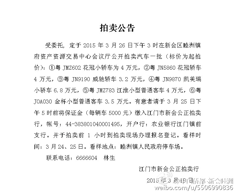 拍卖公告及竞买须知
