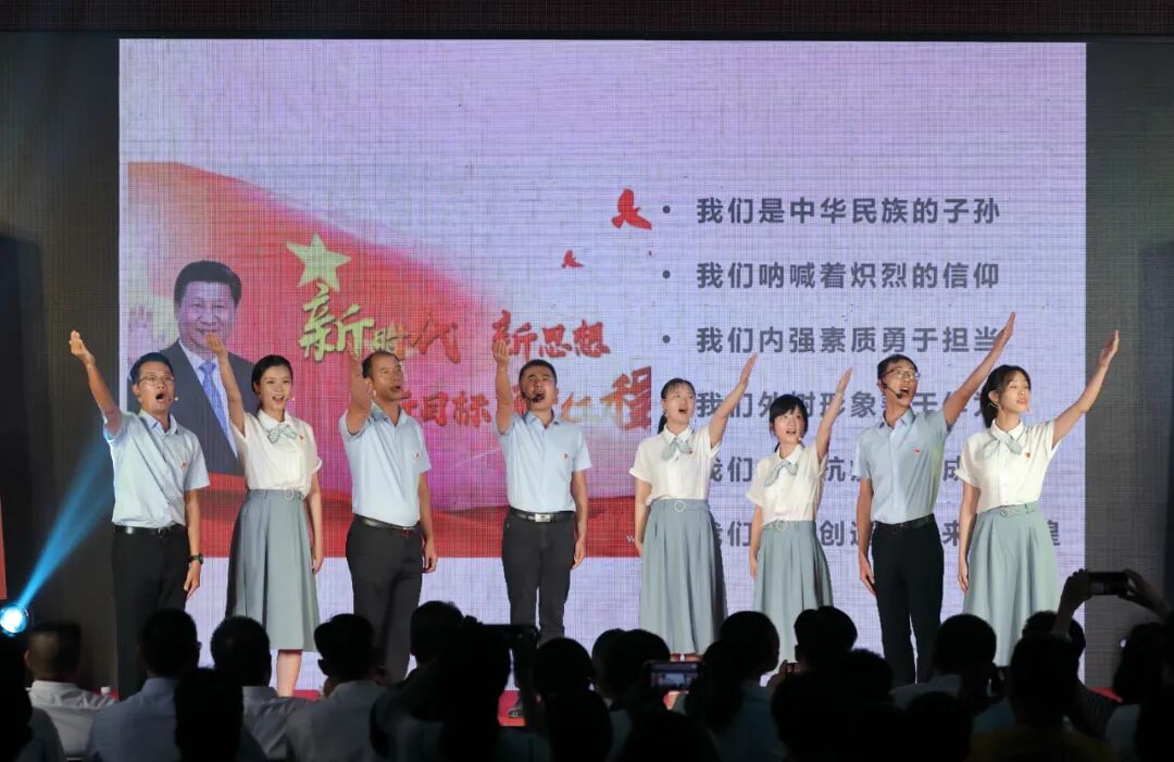 镇机关9支队伍相继登场,合唱歌曲《我宣誓》、诗歌朗诵《党啊我们为您歌唱》、舞台剧《我想对党说》等精彩演出。大家通过跳跃的音符、动感的舞姿、深情的朗诵,结合自身部门工作职能特色,展现机关青年的活力风采,表达了永远跟党走、拼搏干事创业的坚定。