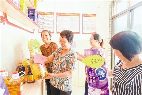 “我刚兑换了纸巾,原本想兑换花生油,但是积分不够。今后,我要继续加油,存下更多积分。”无法兑换心仪礼品并没有让临步村村民陈姨失望,反而激发了她继续获得积分的劲头。