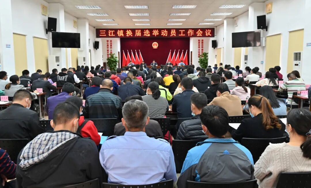 12月2日,三江镇召开村(社区)“两委”换届选举工作动员会暨业务培训班,学习贯彻省、市、区关于村级换届选举工作要求,对全镇换届选举工作进行动员部署。镇领导班子成员、非领职干部、驻村正副组长、中层副职以上干部、各村(社区)“两委”干部、资料员,镇换届办工作人员以及区换届办第4驻镇指导组全体成员,共140多人参加会议。