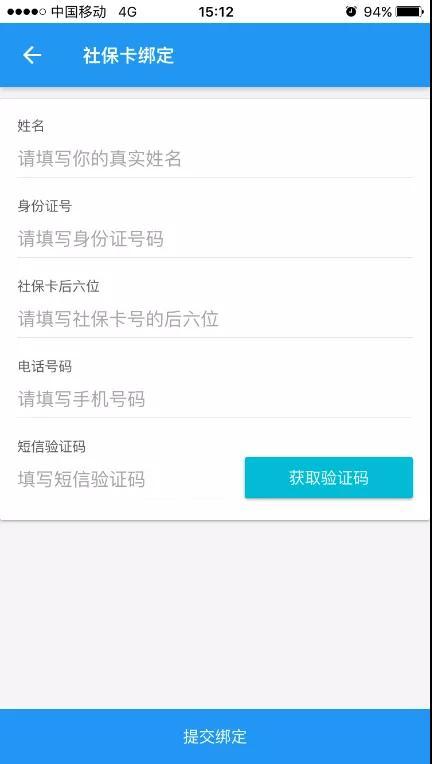 三、根据提示要求输入个人的相关信息并获取短信验证码进行绑定: