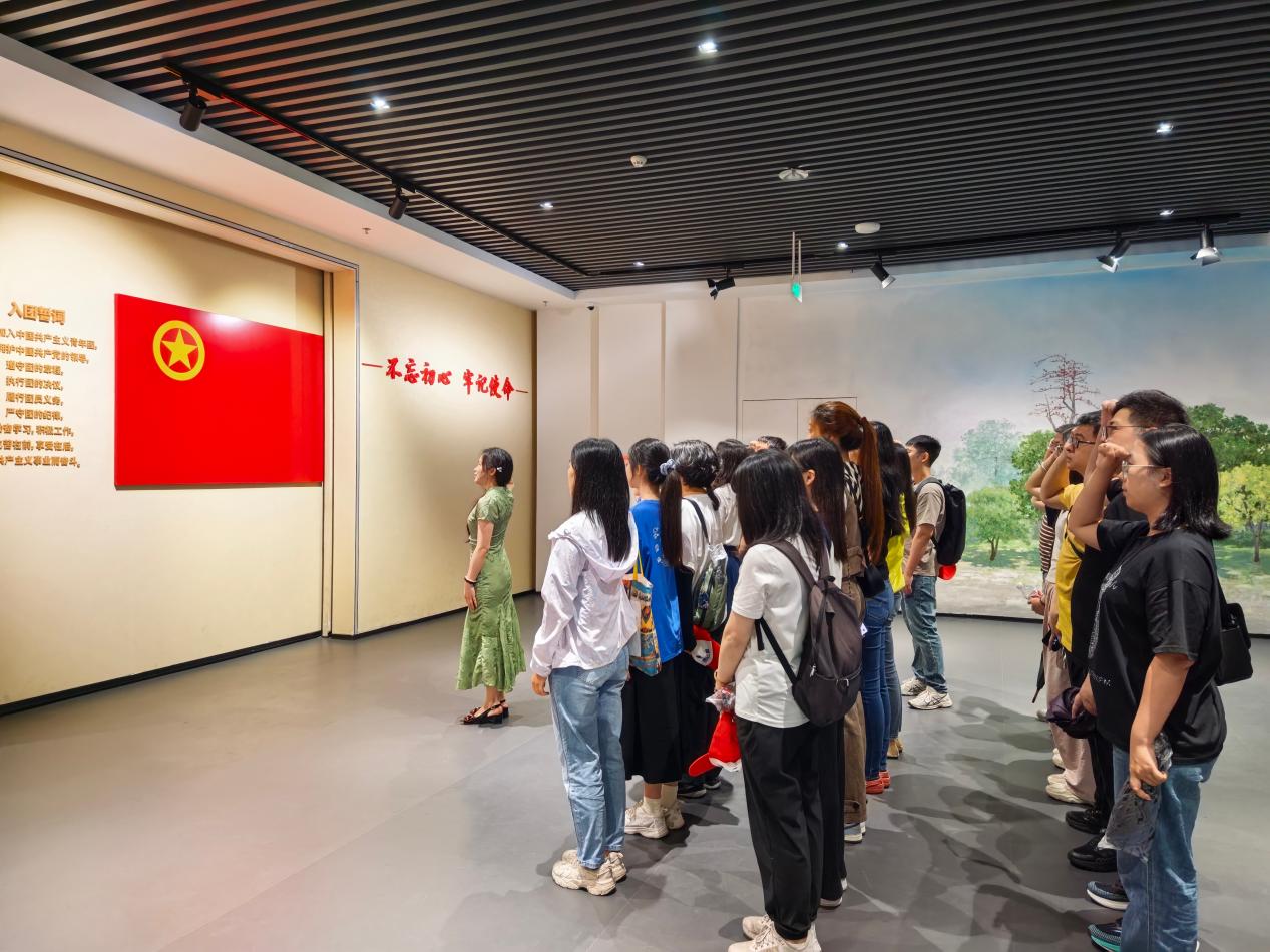 随后,队伍前往全国重点文物保护单位团一大广场。在团一大纪念馆内,“党缔造共青团”主题展览以1200平方米的叙事空间,通过200余幅历史图片、70余件实物展品及多媒体场景复原,全景展现了共青团从孕育到诞生的革命历程。
