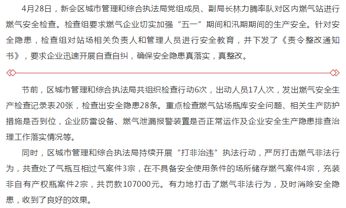 【安全检查】“五一”节前开展燃气安全生产检查,严厉打击燃气非法行为