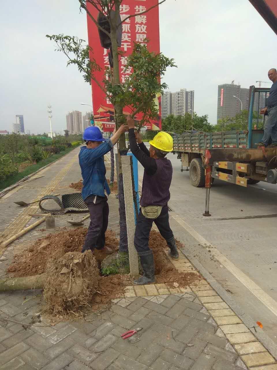 同时,对城区缺失的乔木开展补种工作,并且为了提高工作效率,区园林处根据实际情况,列出详细工作方案,将园林工人分成清挖、运苗、种植等若干班组,按照方案中的时间节点和工作步骤,各个班组有条不紊地合作,冒着酷暑,加班加点完成工作。
