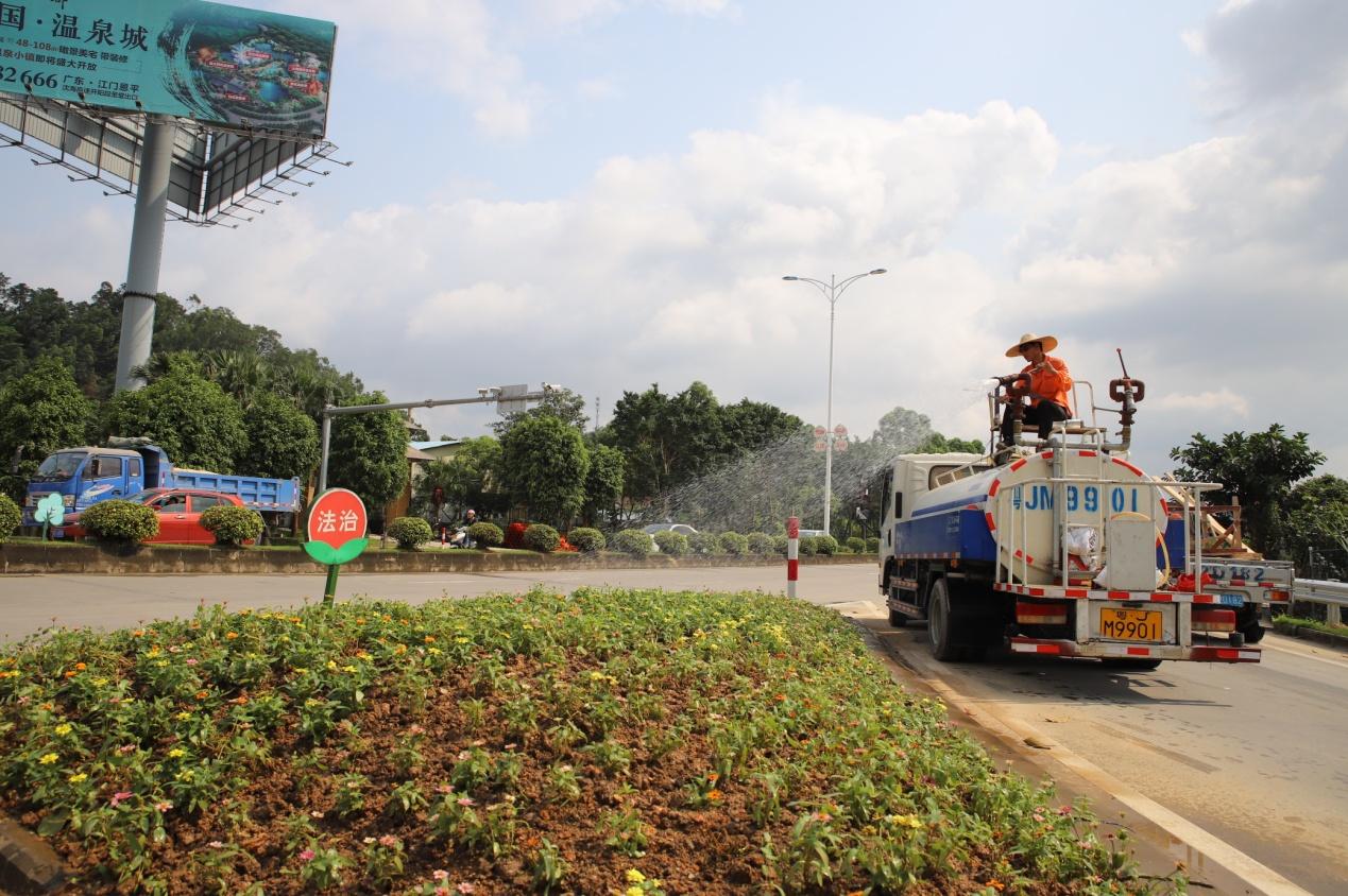 为了绿化植物能够有健康生长,区园林处采取定期施肥和不定期增输营养液的措施,顾不上酷热难耐,只为给绿化植物满满的营养。