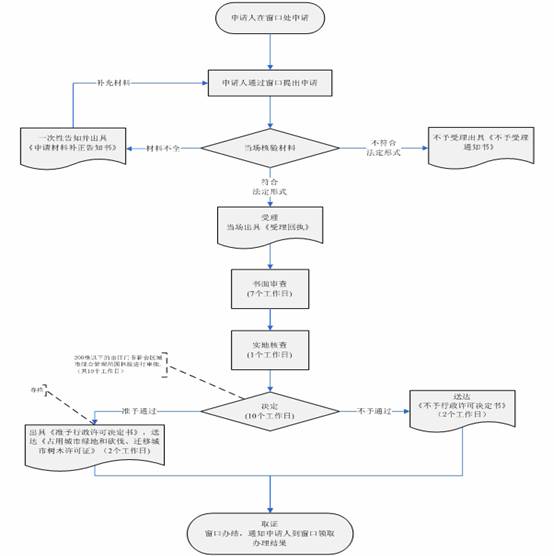 图1 砍伐、迁移城市树木审批窗口办理流程