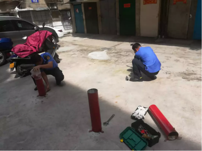 拆除违章加建铁柱、花圃