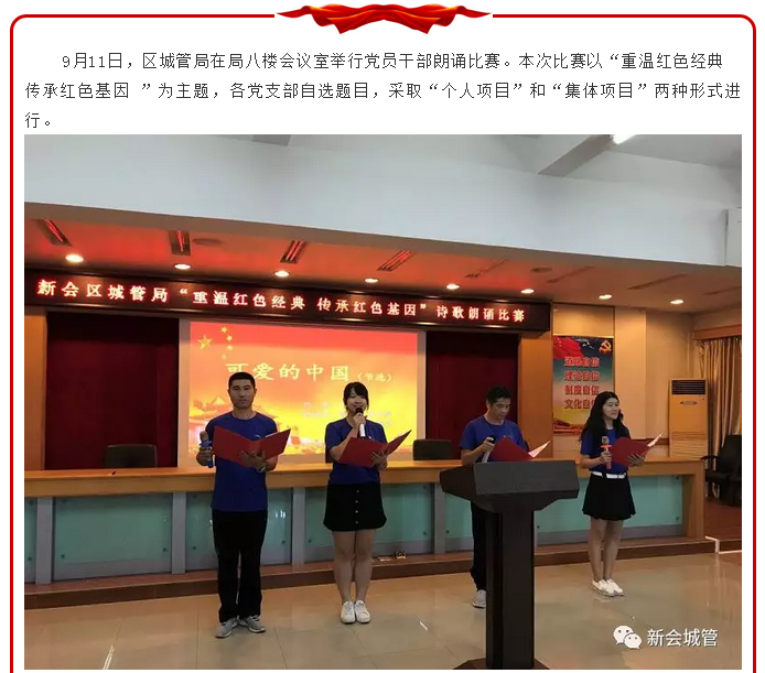 区城管局举行“ 重温红色经典 传承红色基因 ”诗歌朗诵比赛