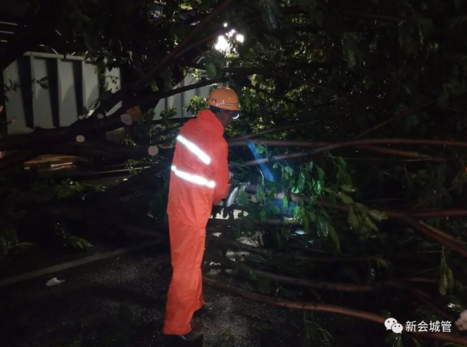 “山竹”来了,风里雨里,环卫工人通宵达旦扫路清枝