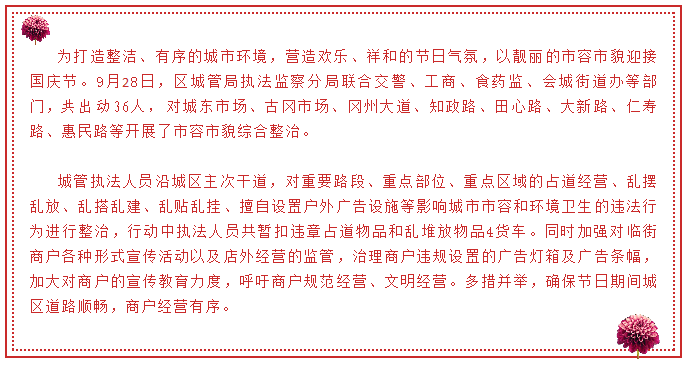 【城管头条】澳洲幸运5(中国)开奖记录查询站 城管局加强节前管理,确保节日市容有序