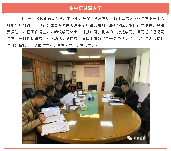 区城管局党组理论学习中心组抓好“三个学”,切实学深学透习近平总书记视察广东重要讲话精神