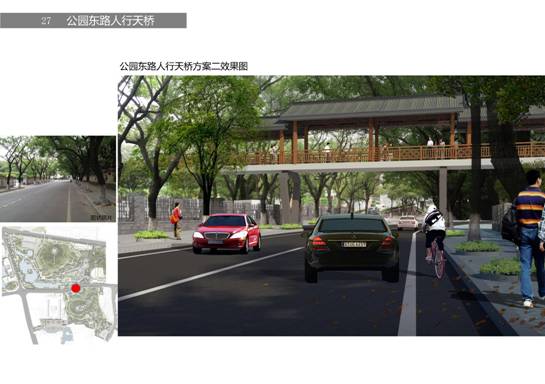 (一)新建人行天桥。在公园东路新建人行天桥,连接马山公园和北园公园。