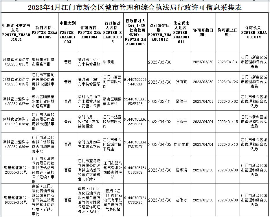 4.4澳洲幸运5(中国)开奖记录查询站 城市管理和综合执法局行政许可信息.xls
