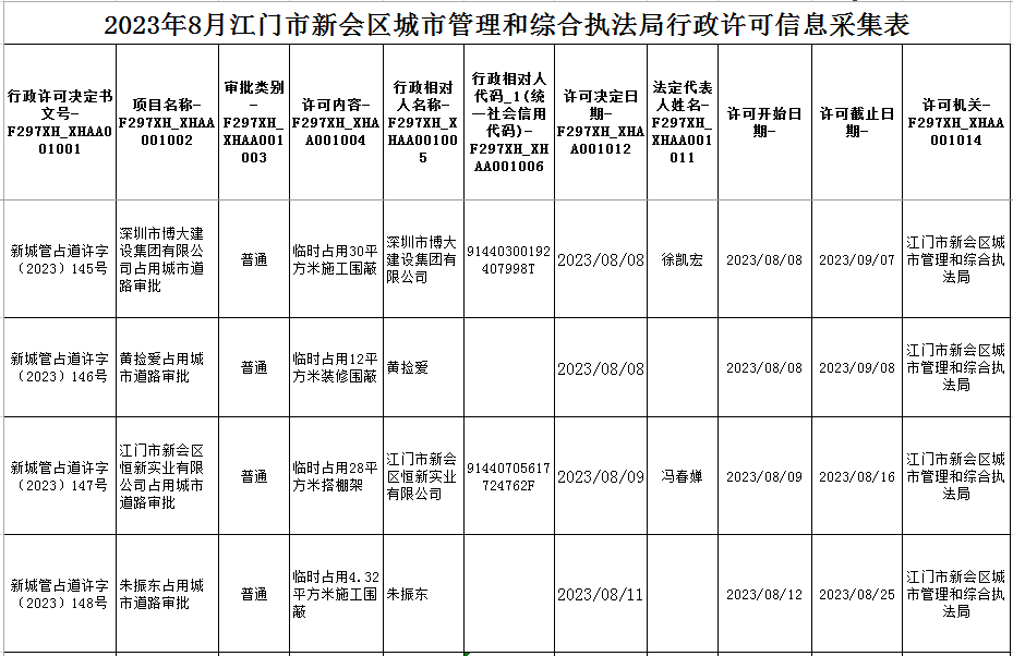 8.15澳洲幸运5(中国)开奖记录查询站 城市管理和综合执法局行政许可信息.xls